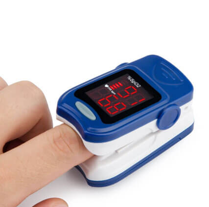 The simplest test is the oximetry, or pulse oximetry, a method for the direct, non-invasive and continuous measurement of the percentage of oxygen saturation of the circulating arterial blood haemoglobin, by means of a device called oximeter or pulse oximeter. The most common type of pulse oximeter consists of a “gripper” or “thimble” sensor applied to the fingertip that detects the oxygen percentage bound to the blood haemoglobin circulating through the finger.