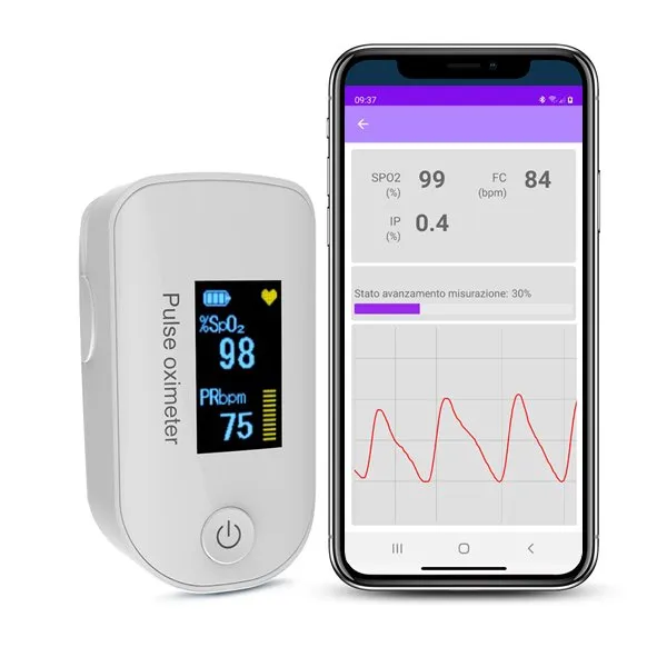 Il pulsossimetro è uno strumento per la rilevazione della saturazione percentuale dell’ossigeno nel sangue (SpO2) e della frequenza cardiaca.